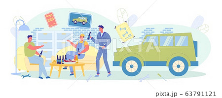 Friends Spending Leisure Time In Garage Drinking のイラスト素材
